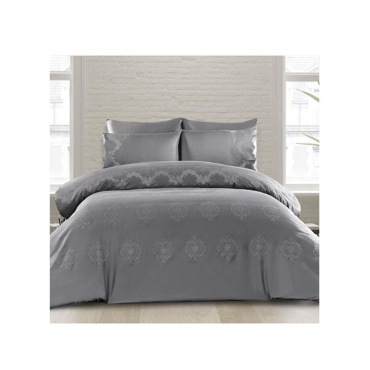 Nazik Home Elsa Jakar Desenli Pamuk Saten 6 Parça Nevresim Takımı Antrasit Çift Kişilik