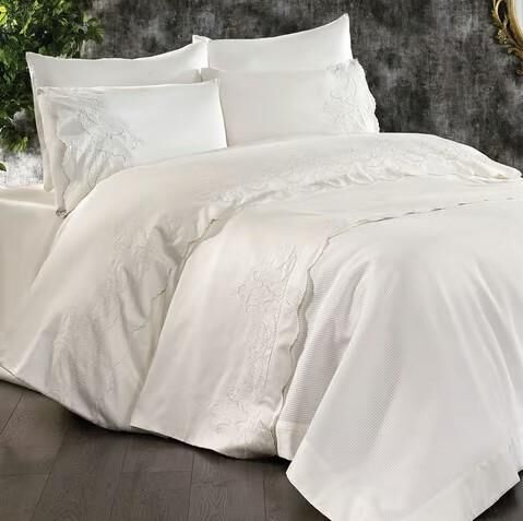Nazik Home Hanedan İşlemeli Nevresim Takımı Ve Pike 7 Parça Seti Krem Çift Kişilik