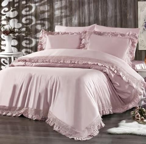 Nazik Home Helen Organik Dantelli Pamuk Saten 6 Parça Çift Kişilik Nevresim Takımı Bej Pudra CK