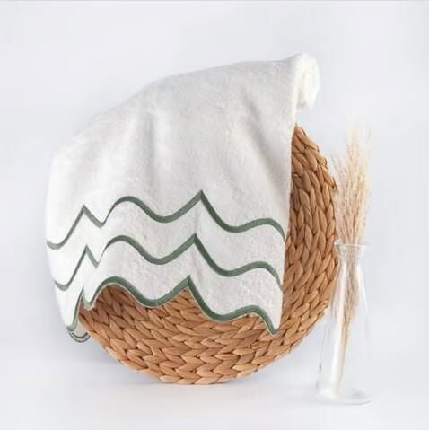 Nazik Home Helena Çizgi Nakışlı Pamuk Havlu Yeşil 50X90