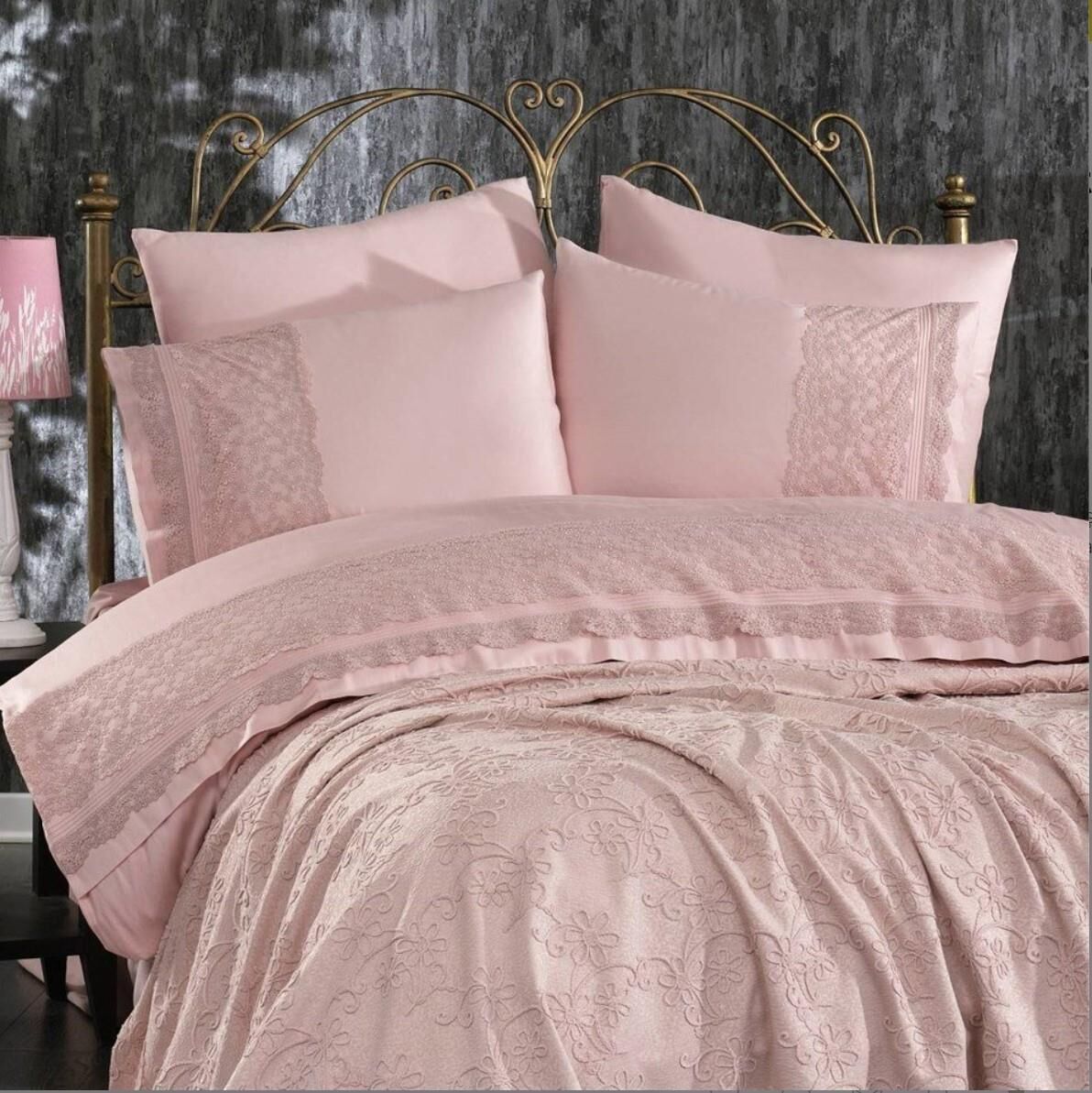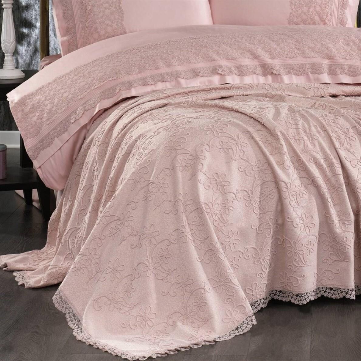 Nazik Home Juliette Dantelli Nevresim Takımı Ve Pike 7 Parça Seti Pudra Çift Kişilik