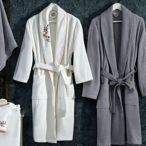 Nazik Home Kayra Kadın & Erkek 6 Parça Aile Bornoz Seti Krem / Gri STD