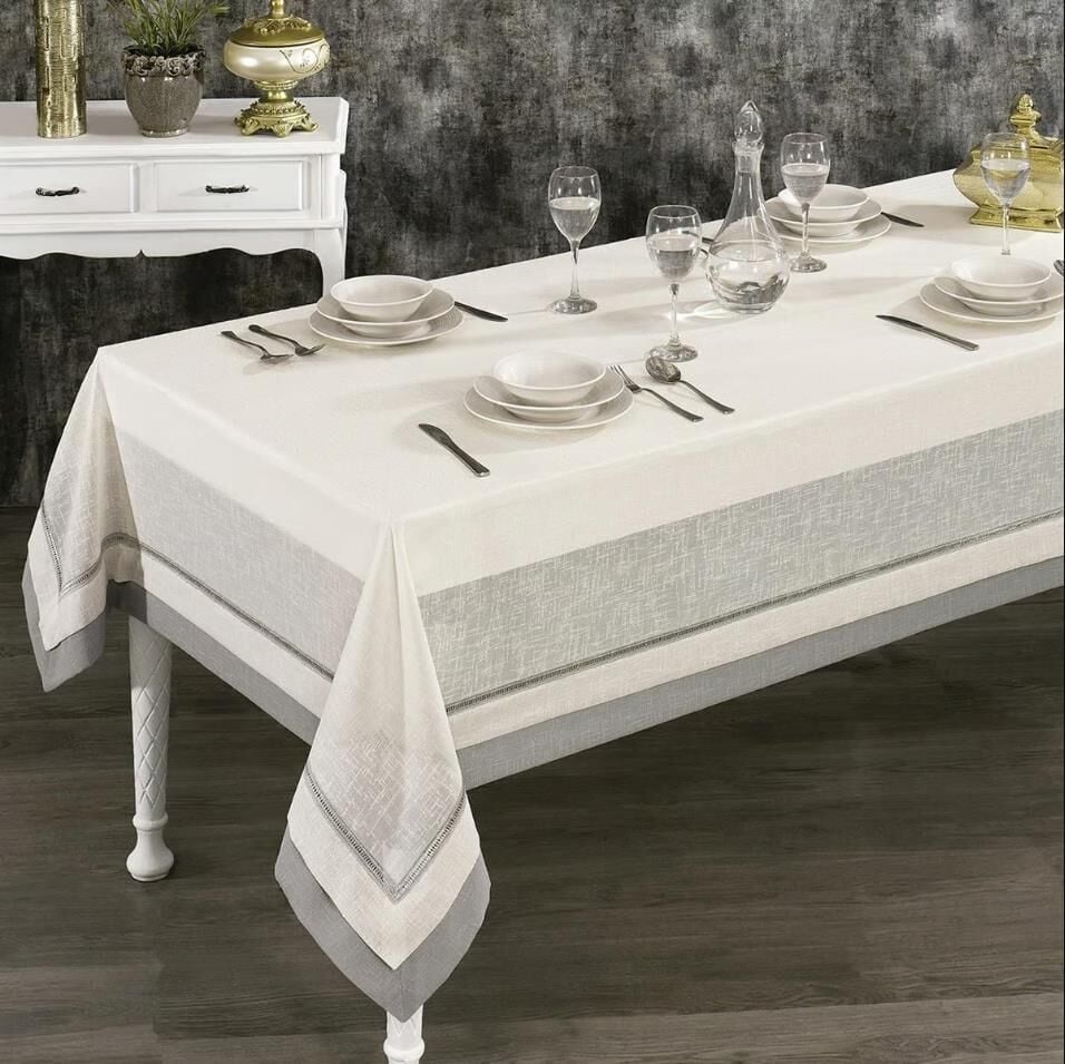 Nazik Home Latina Masa Örtüsü Krem / Gri 160X260