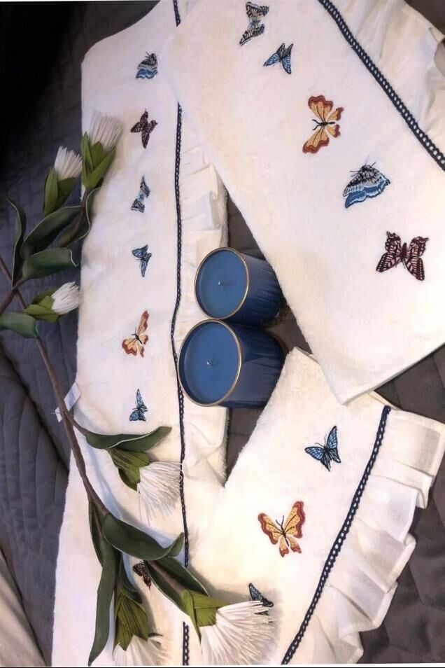 Nazik Home Laura Kelebek Nakışlı Havlu Beyaz 50X90
