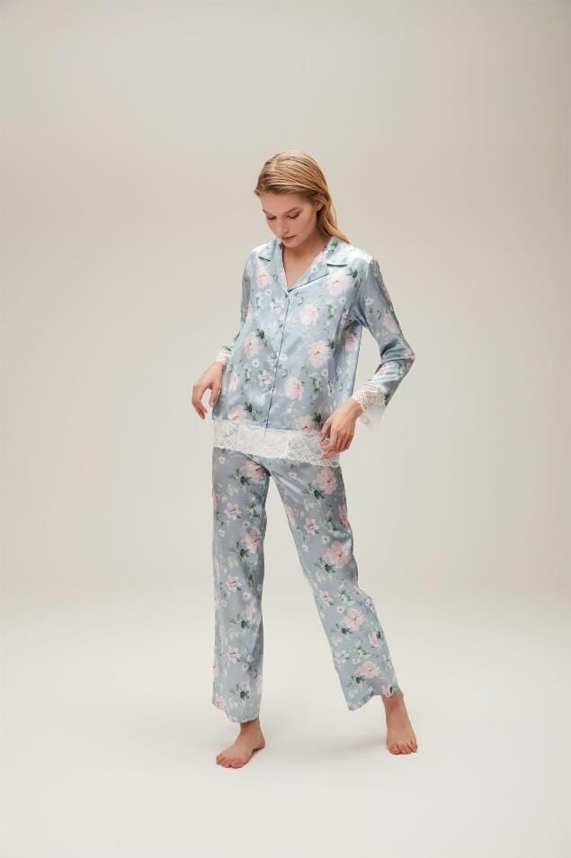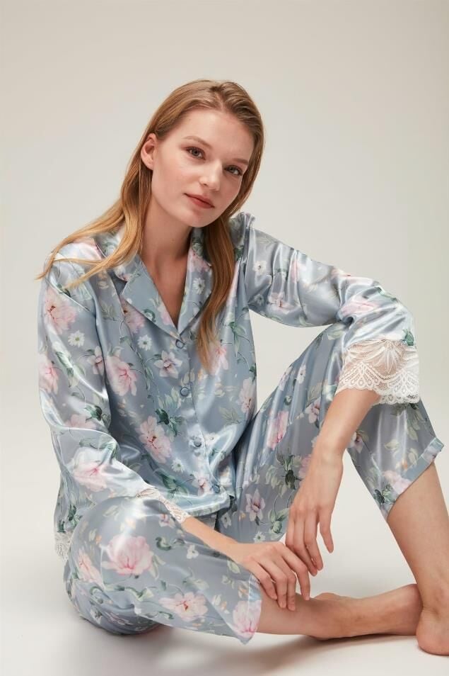 Nazik Home Liva Dantelli Pijama Takımı Açık Mavi S