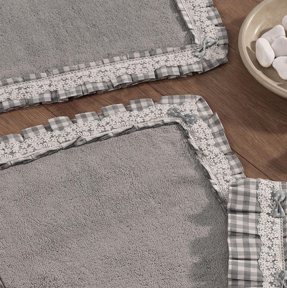 Nazik Home Lucca Pötikareli İkili Banyo Paspas Seti + Havlu Hediyeli Gri