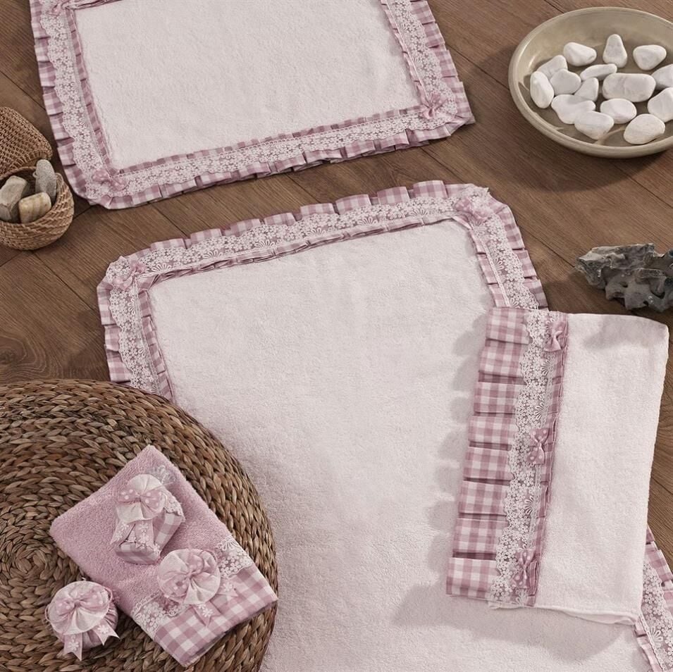 Nazik Home Lucca Pötikareli İkili Banyo Paspas Seti + Havlu Hediyeli Pembe