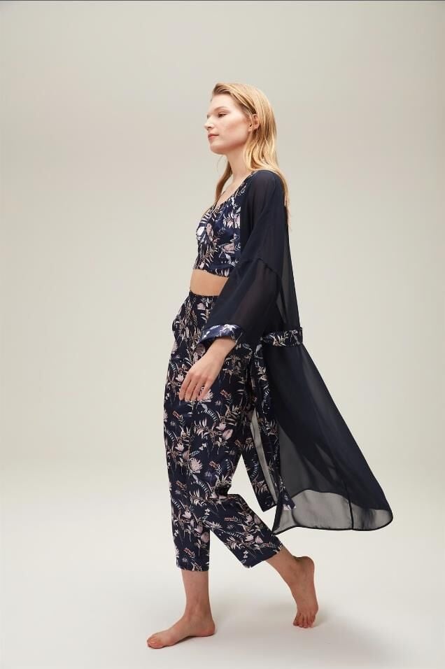 Nazik Home Mia Sabahlık Pantolon Büstiyer 3'lü Takım Lacivert L
