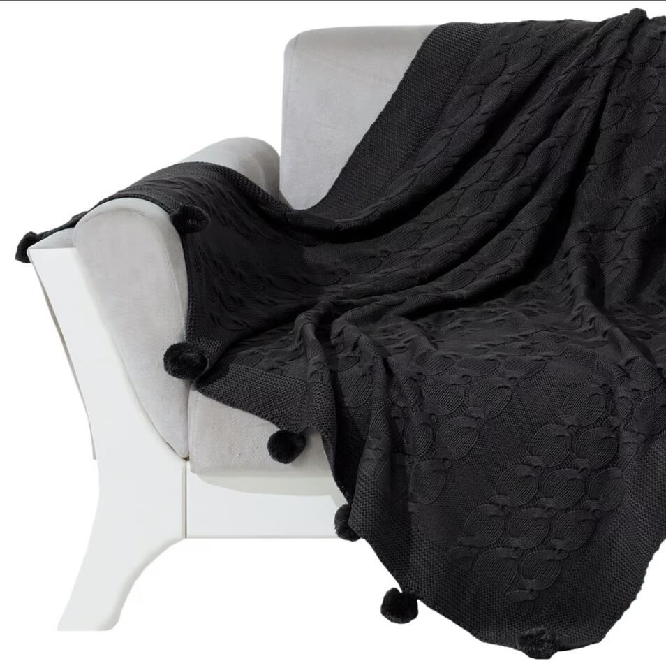 Nazik Home Ponponlu Dekoratif Bella TV Diz Battaniyesi Antrasit 130X170
