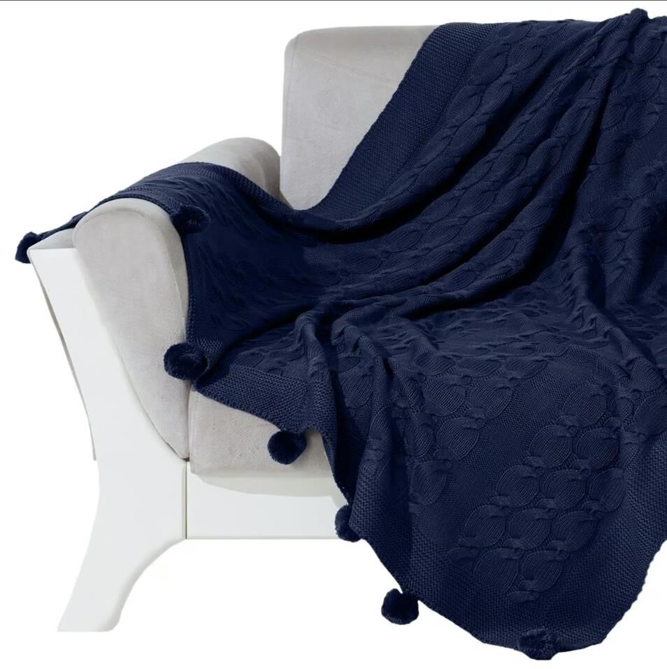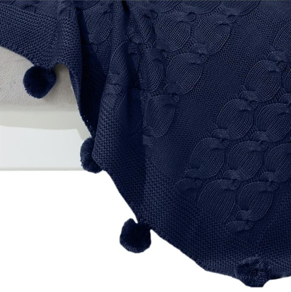 Nazik Home Ponponlu Dekoratif Bella TV Diz Battaniyesi Lacivert 130X170