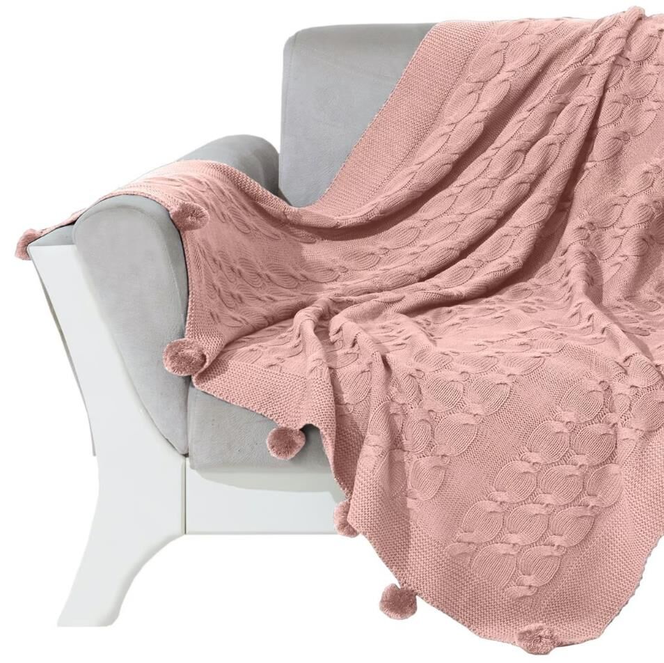 Nazik Home Ponponlu Dekoratif Bella TV Diz Battaniyesi Pudra 130X170