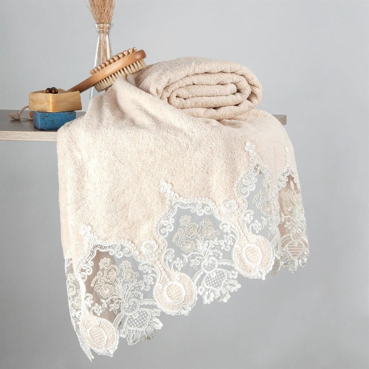 Nazik Home Rita Dantelli Pamuk Havlu-Krem 30x50