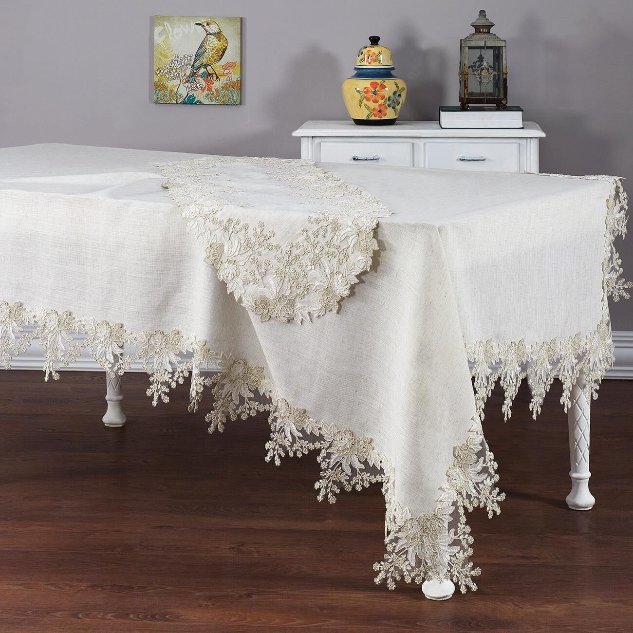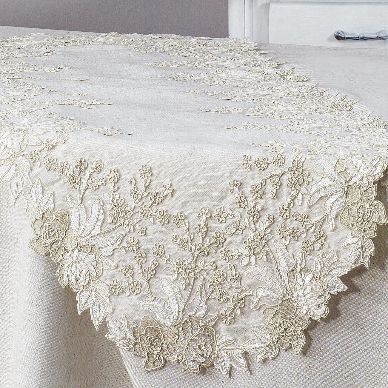 Nazik Home Serenita Çiçek Nakışlı Masa Örtüsü + Runner Masa Sunum Seti Krem