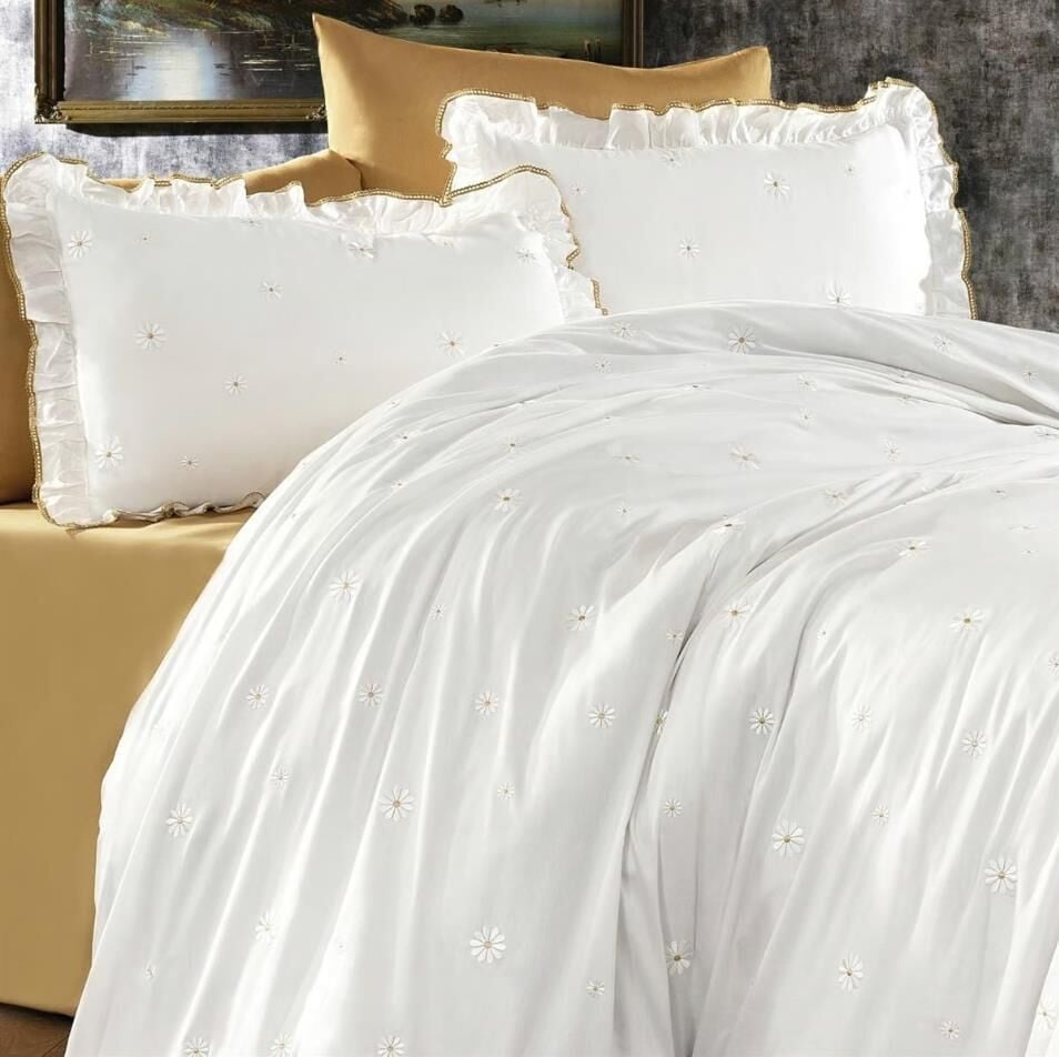 Nazik Home Sunny Papatya Nakışlı Nevresim Takımı Krem Çift Kişilik