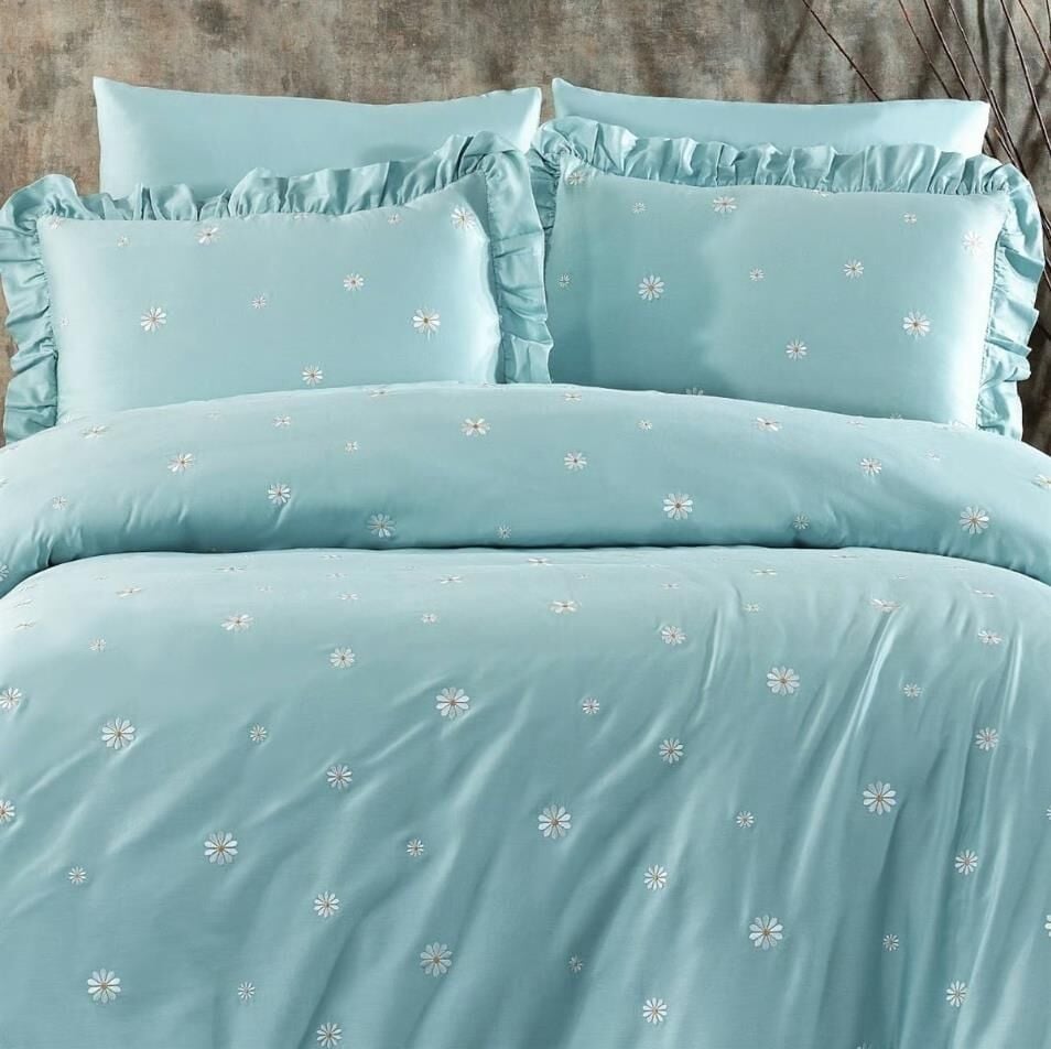 Nazik Home Sunny Papatya Nakışlı Nevresim Takımı Mint Çift Kişilik