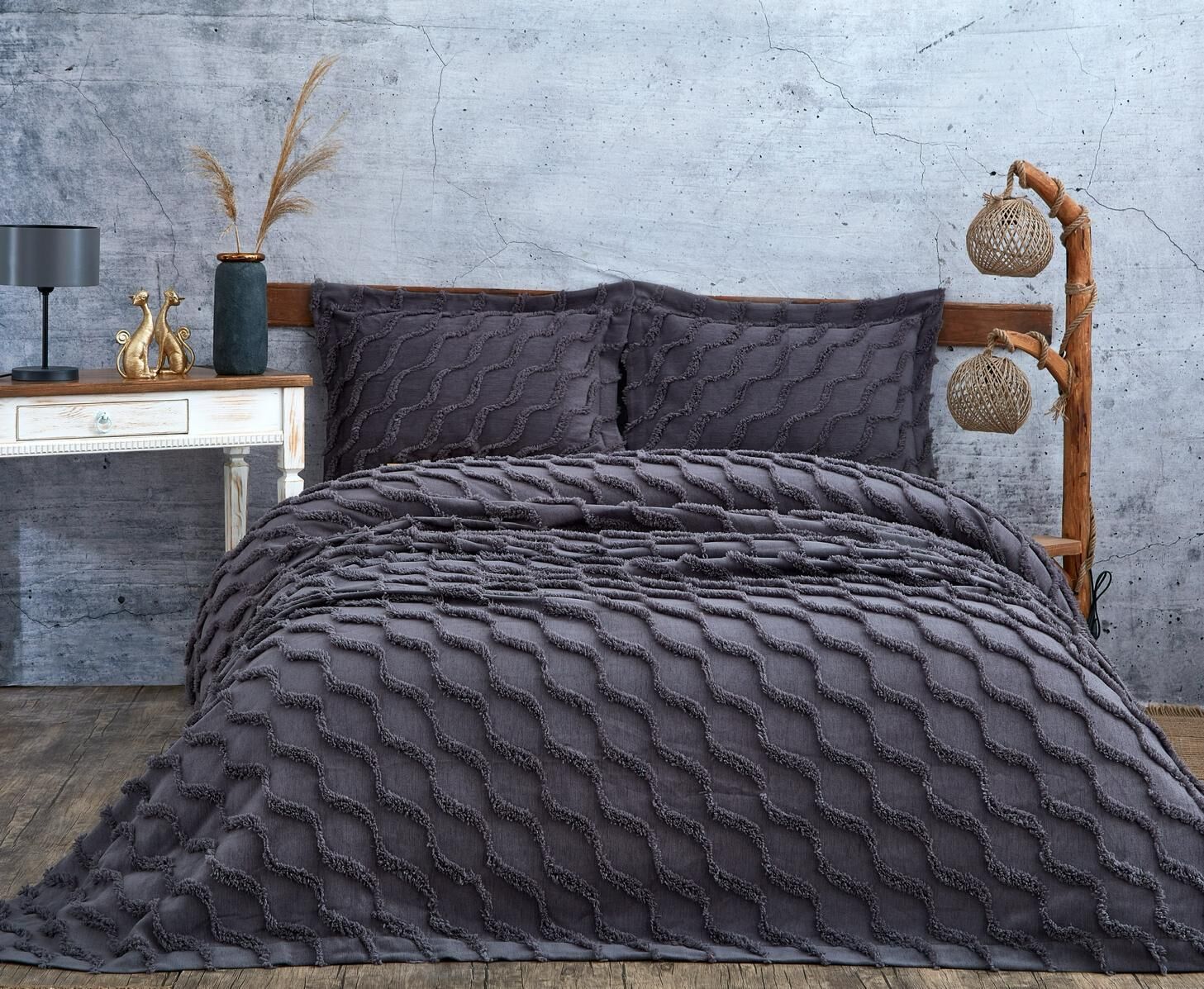 Nazik Home Terra Yatak Örtüsü Çift Kişilik-Antrasit