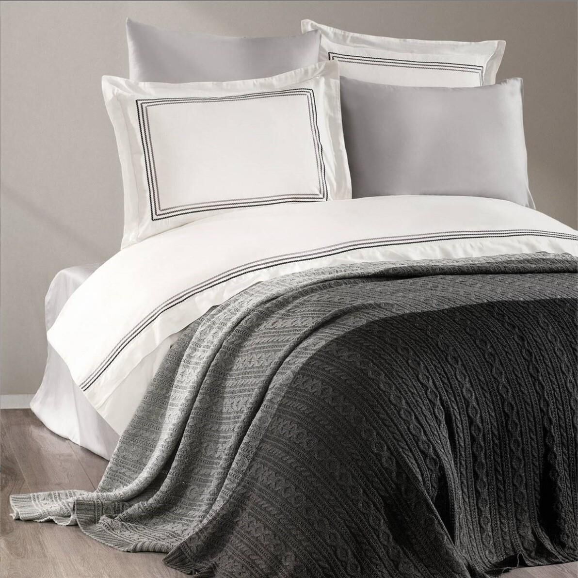 Nazik Home Trend Nevresim Takımı + Triko Battaniye 7 Parça Seti Gri Çift Kişilik