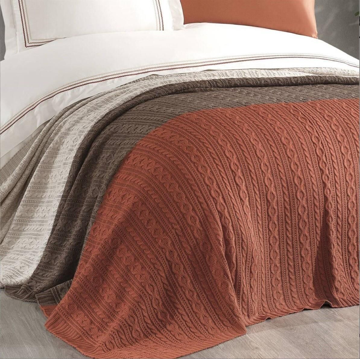 Nazik Home Trend Nevresim Takımı + Triko Battaniye 7 Parça Seti Kiremit Çift Kişilik