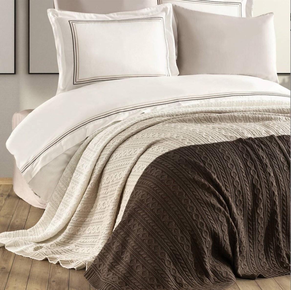 Nazik Home Trend Nevresim Takımı + Triko Battaniye 7 Parça Seti Vizon Çift Kişilik