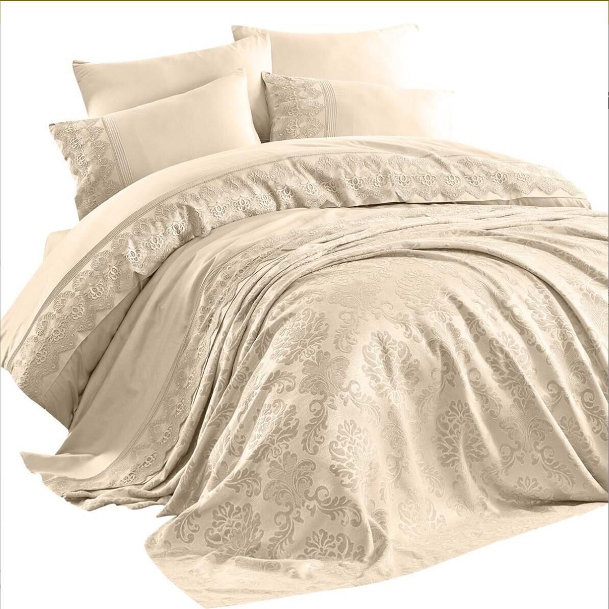 Nazik Home Valeria Dantelli Nevresim Takımı Ve Pike 7 Parça Seti Bej CK