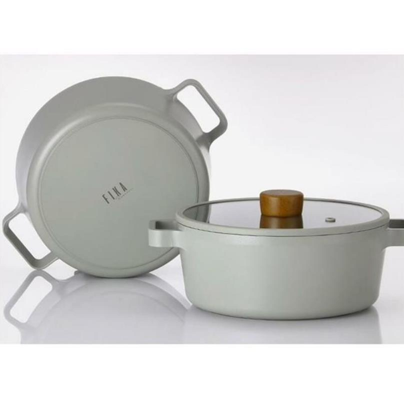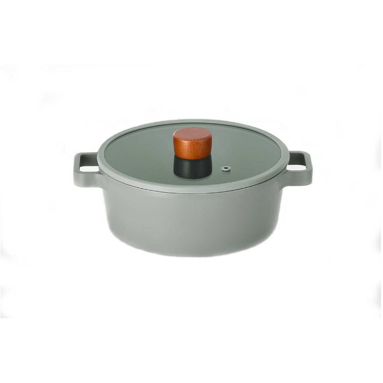 Neoflam Fika Cam Kapaklı Alüminyum Döküm Tencere 22 Cm Gri