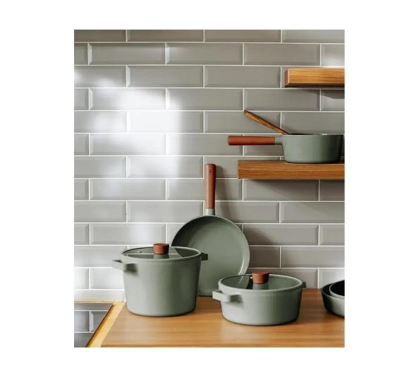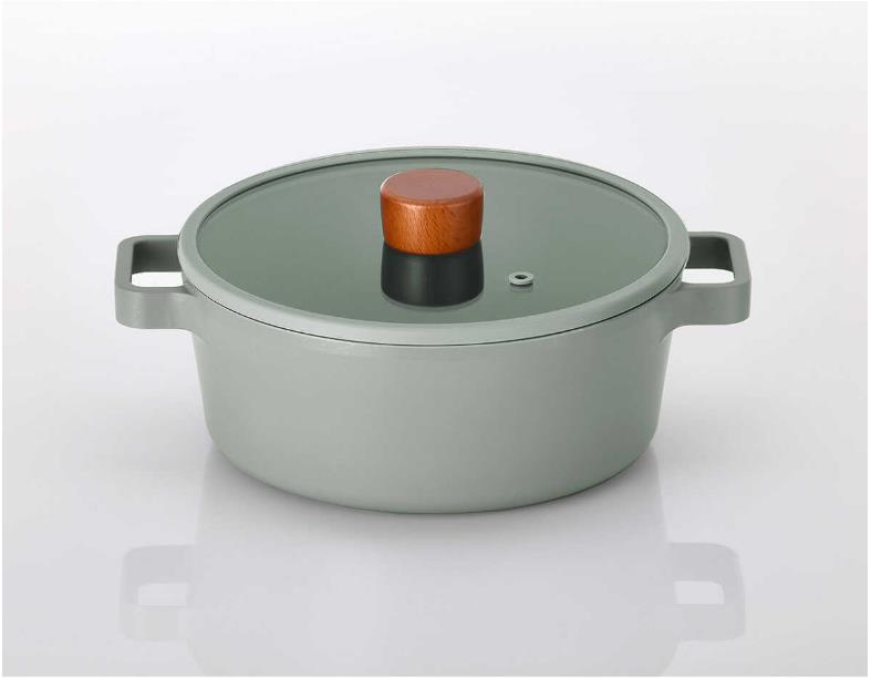 Neoflam Fika Cam Kapaklı Alüminyum Döküm Tencere 24 cm Gri