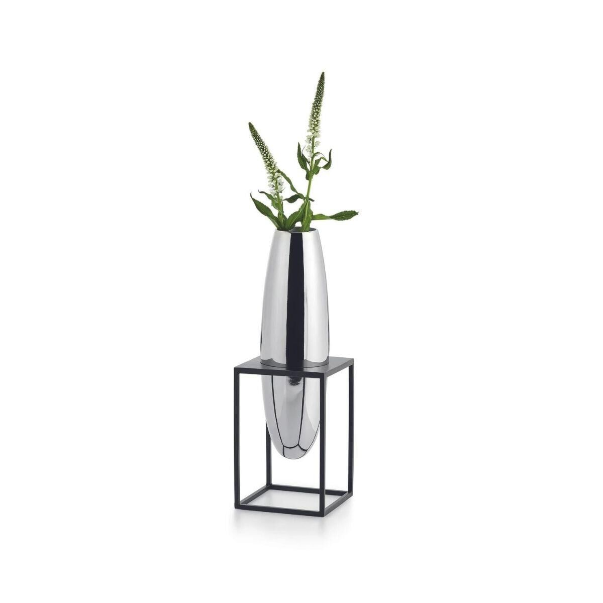 Philippi Solero Ayaklı Vazo S, serinin ana unsuru olan narin ve küp şeklindeki tabanıyla dikkat çeken yüzer görünümlü bir vazodur. Organik kıvrımlarla buluşan bu tasarım, yüksek sanatsal değere sahiptir. Vazonun çerçevesi siyah toz boyalı çelikten, vazonun kendisi ise parlak cilalı nikelden yapılmıştır. Şık ve modern bir tasarıma sahip olan bu vazo, hem görsel olarak çarpıcı hem de dayanıklıdır.