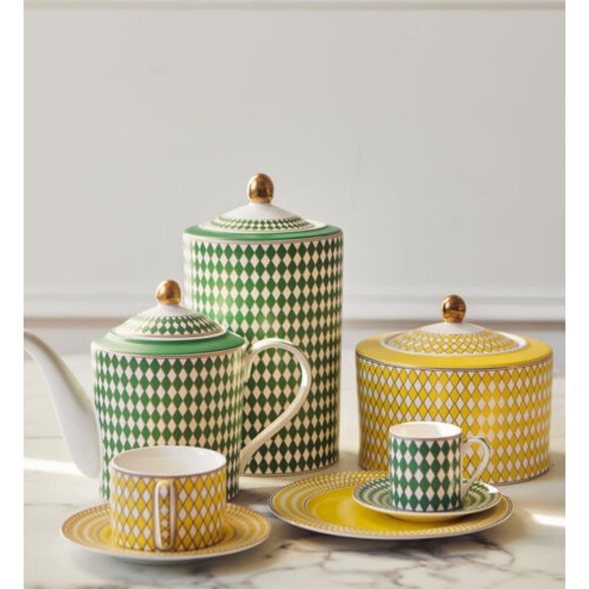 Mat altın detaylarla süslenmiş mat sırlı porselenden üretilen bu detaylı Chess Kavanozu, benzersiz bir konuşma başlatıcı parça. Çay poşetlerinizi ya da şeker ve çikolatalarınızı saklamak için ideal bir yer. Peki, ne olacak – Queen’s Gambit mi, yoksa İngiliz Açılışı mı?