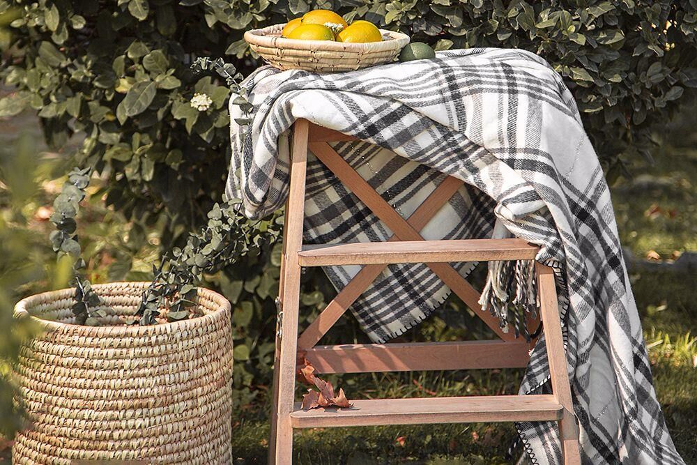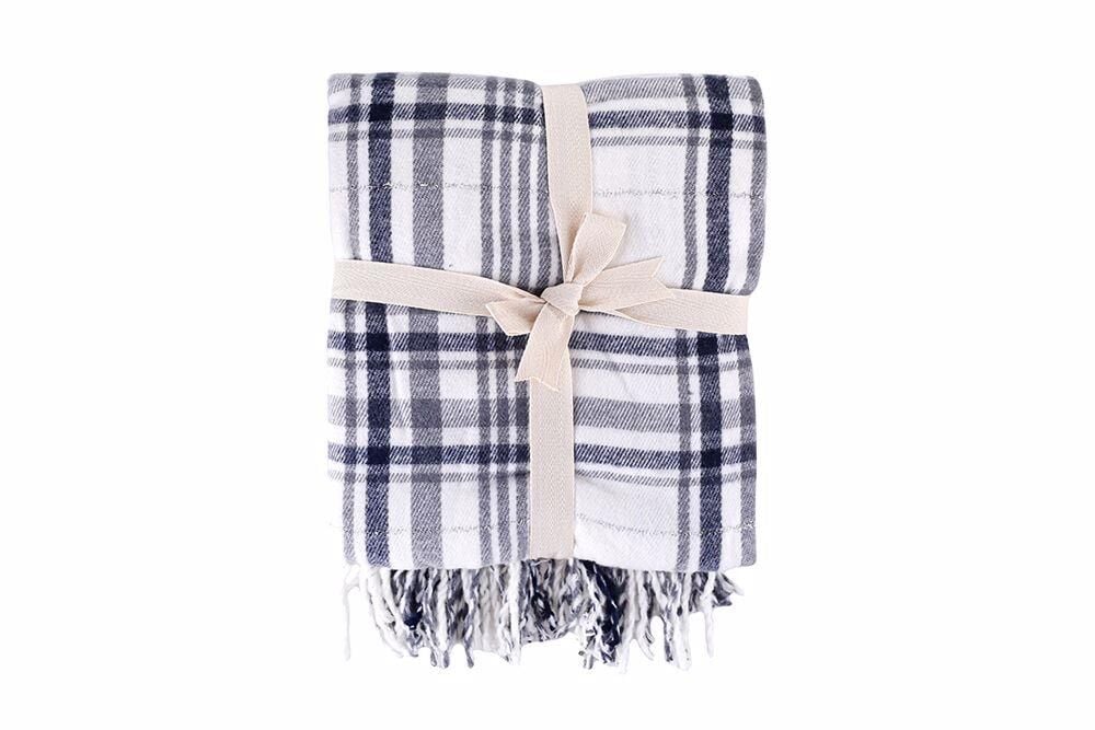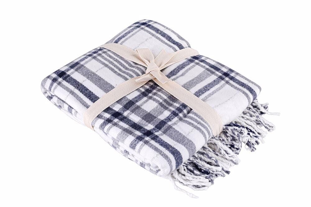 Porland Gri Kareli Simli Battaniye Çift Kişilik