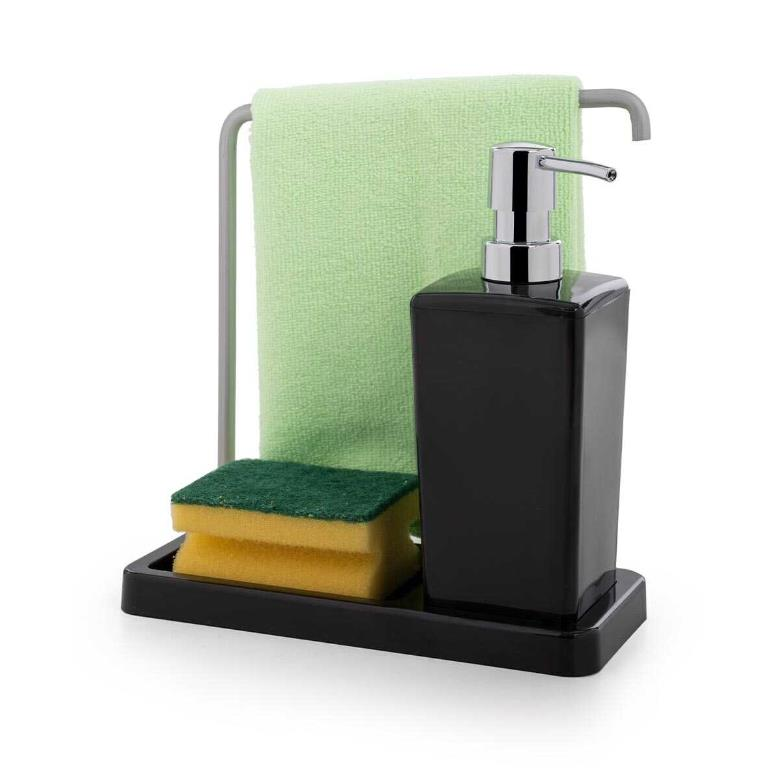 Primanova Luna Askılı Mutfak Sıvı Sabunluk Şeffaf Siyah