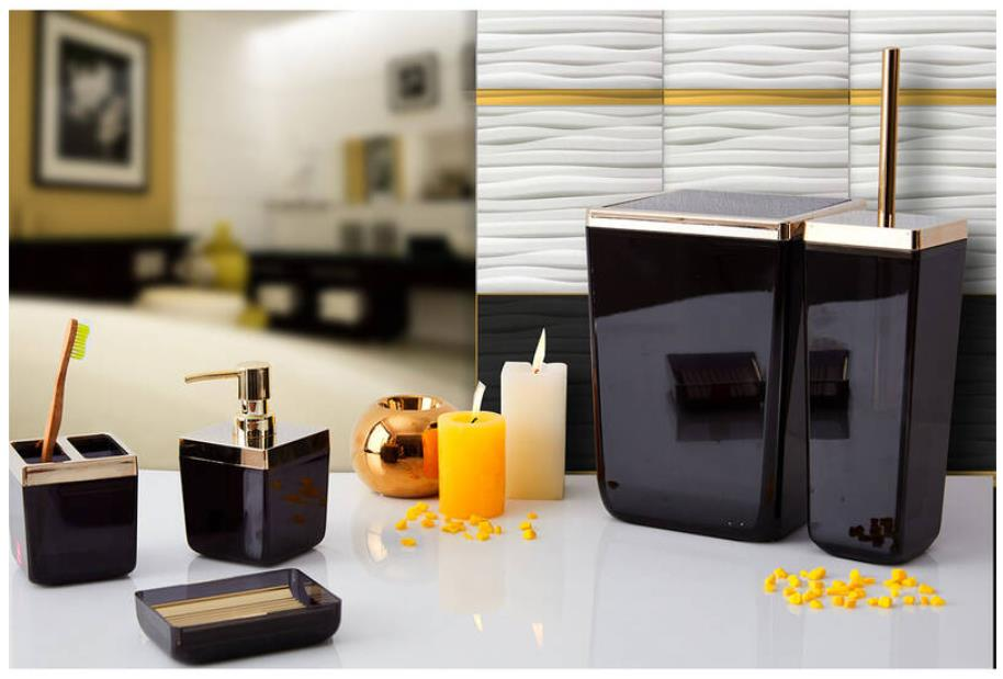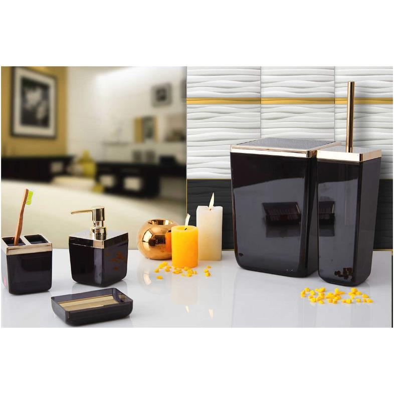 Primanova Toskana Şeffaf Siyah Altın Banyo Seti