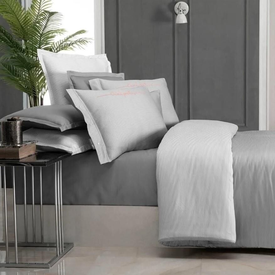 Sarev Adam Saten Nevresim Takımı Gri Çift Kişilik