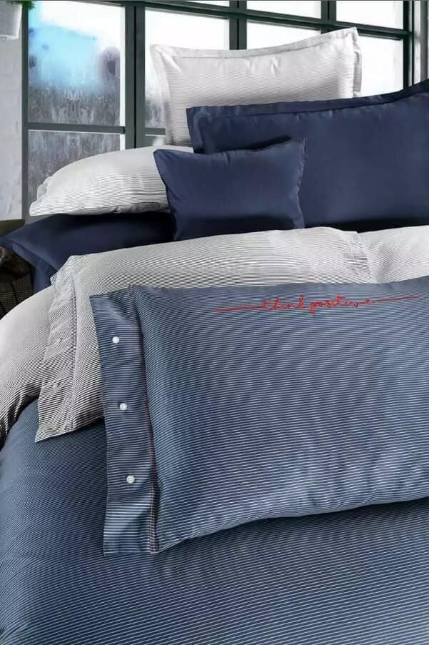Sarev Adam Saten Nevresim Takımı Mavi CK