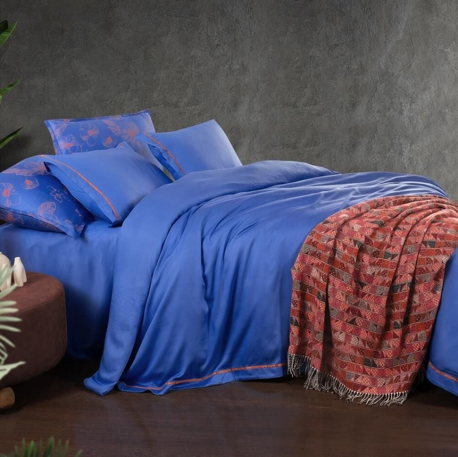 Sarev Adi Mavi Tencel Nevresim Takımı Çift Kişilik 4 Yastık