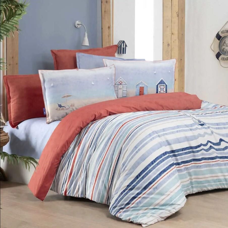 Sarev Capri Fancy Poplin Nevresim Takımı Mavi Çift Kişilik