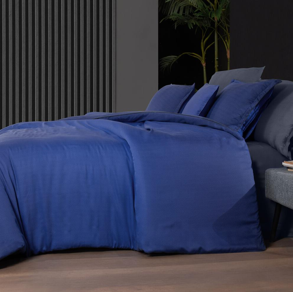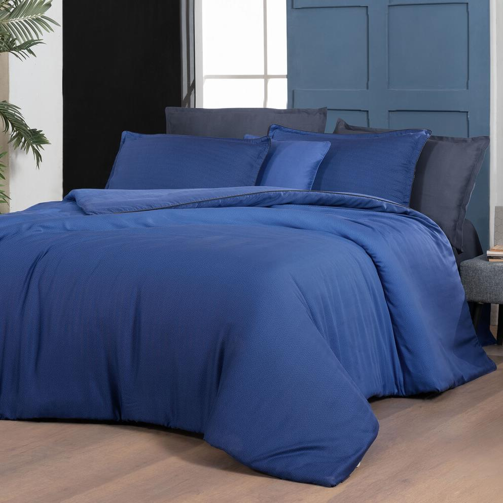Sarev Emery Tencel Nevresim Takımı Çift kişilik 4 Yastık Dk Mavi