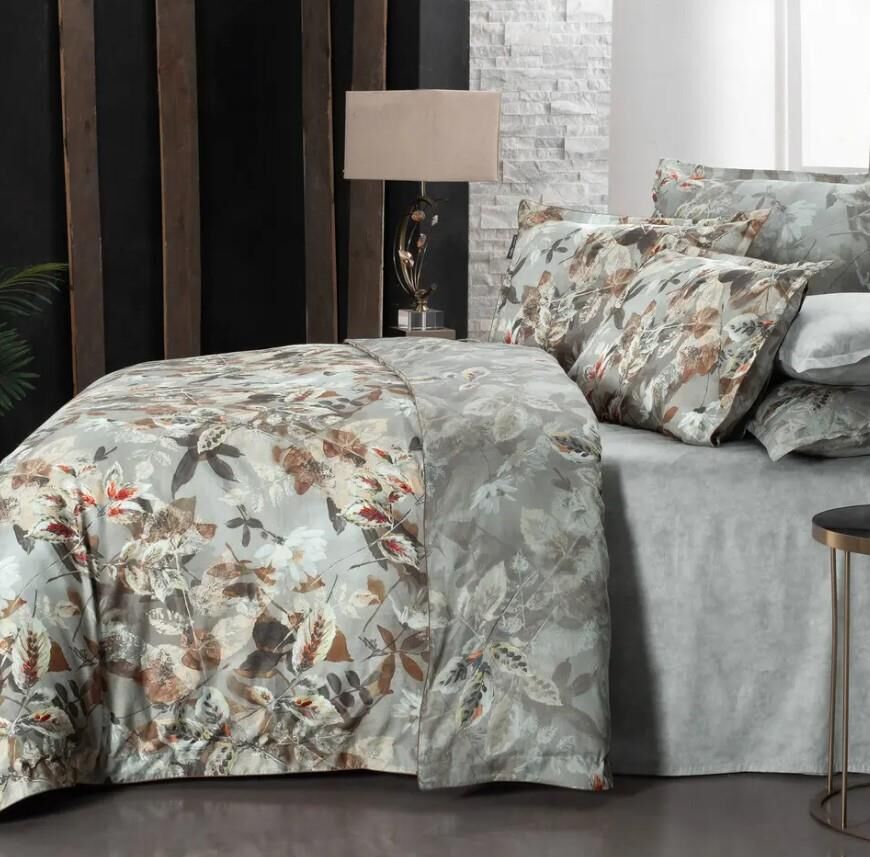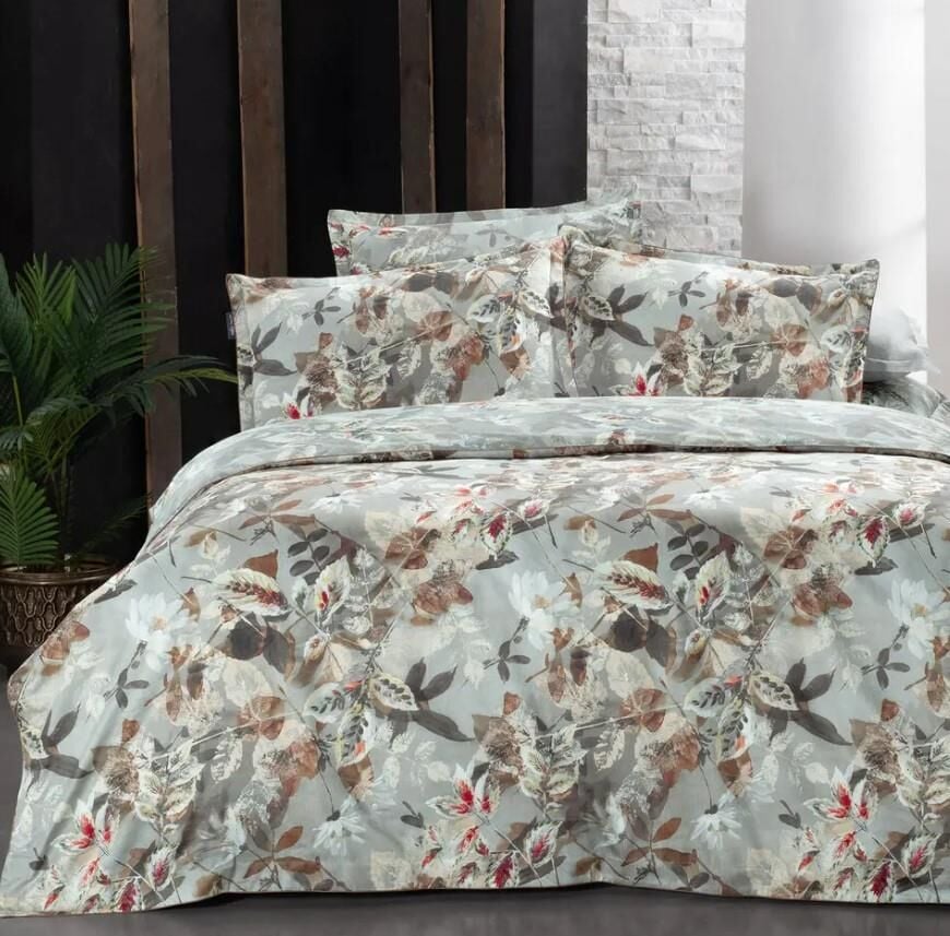 Sarev Emily Saten Nevresim Takımı Çift Kişilik 4 Yastık-Gri