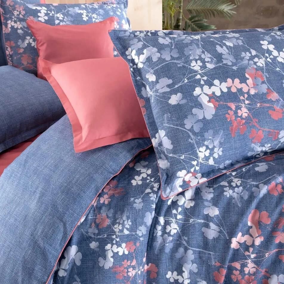 Sarev Enola Fancy Poplin Nevresim Takımı Mavi Çift Kişilik
