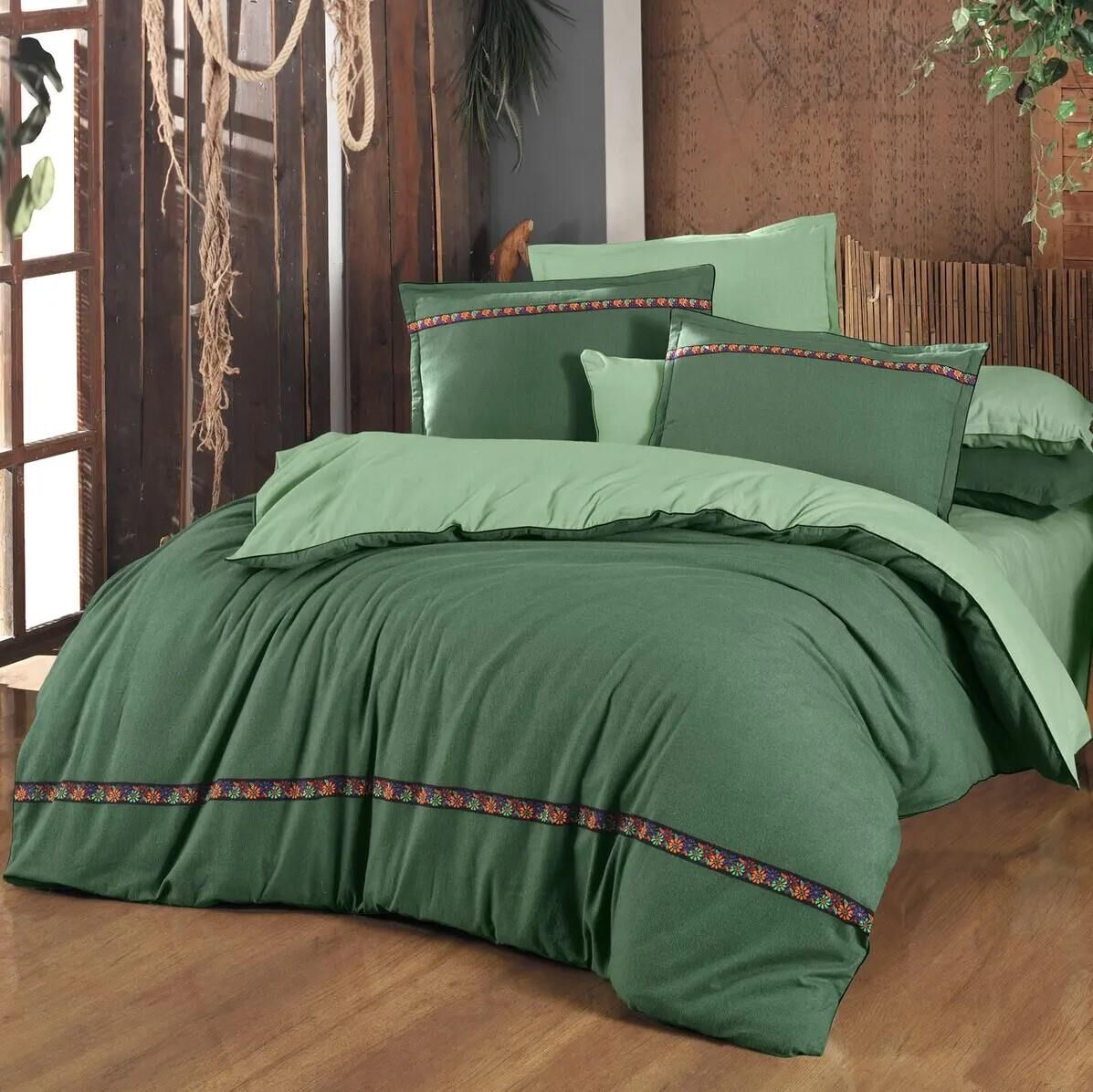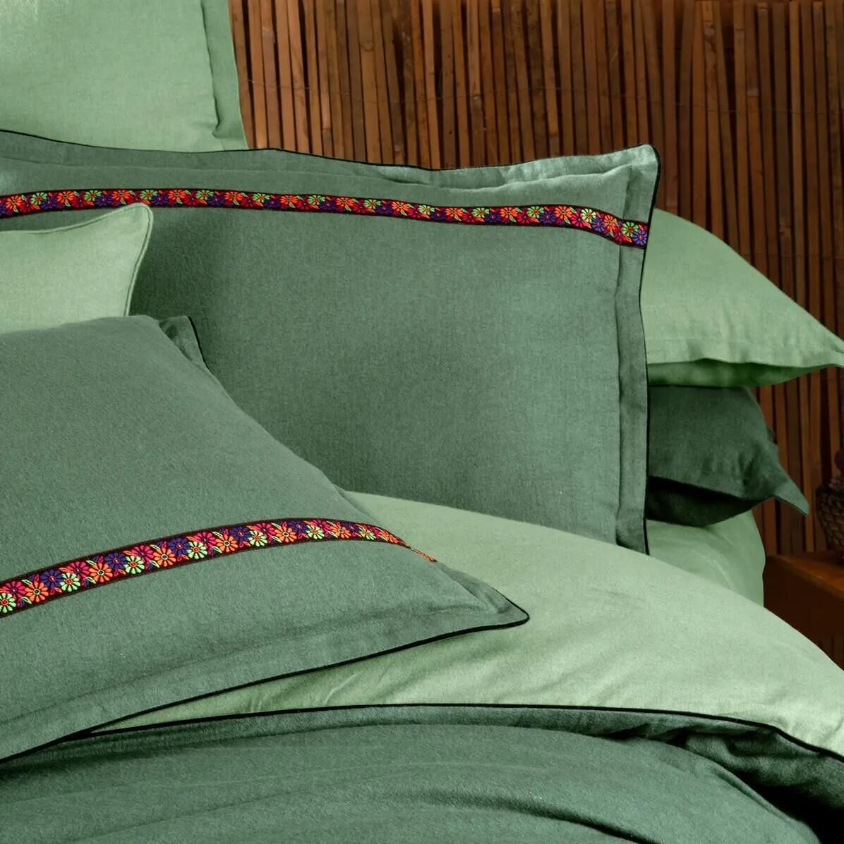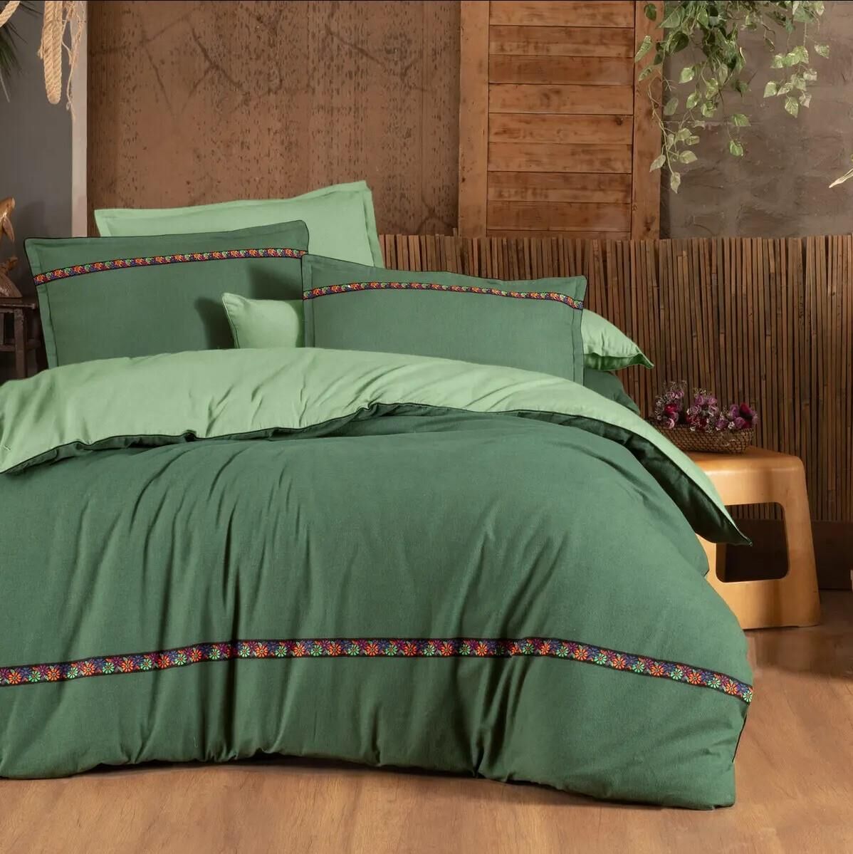 Sarev Enrike Flanel Nevresim Takımı Çift Kişilik 2 Yastık-Yeşil
