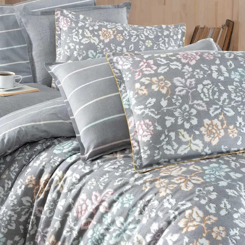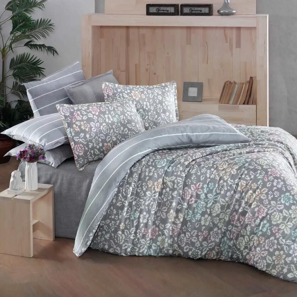 Sarev Erica Fancy Poplin Nevresim Takımı Gri Çift Kişilik