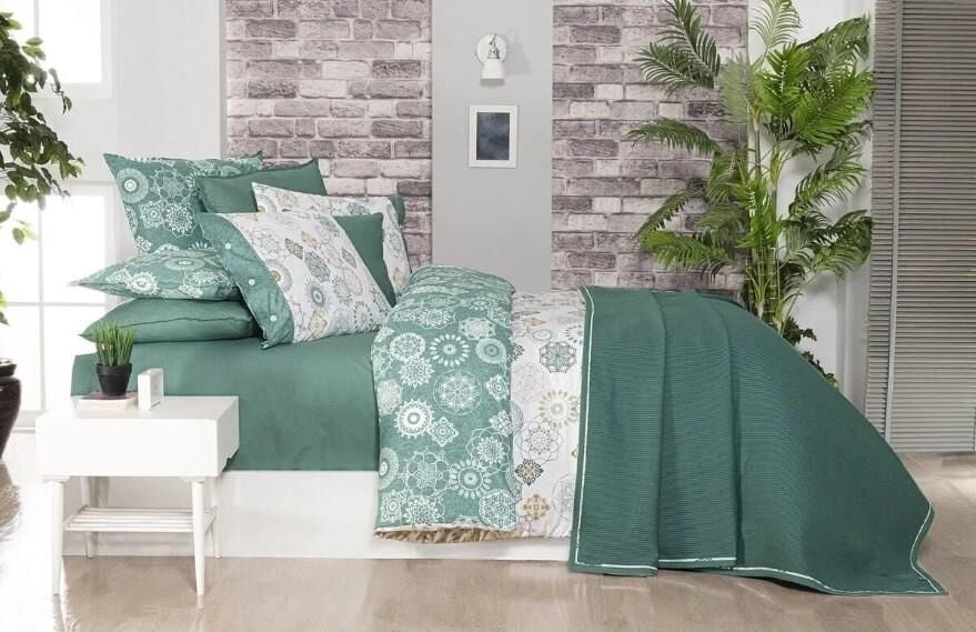 Sarev Eva Bronte Nevresimli Pike Takımı Yeşil Tek Kişilik