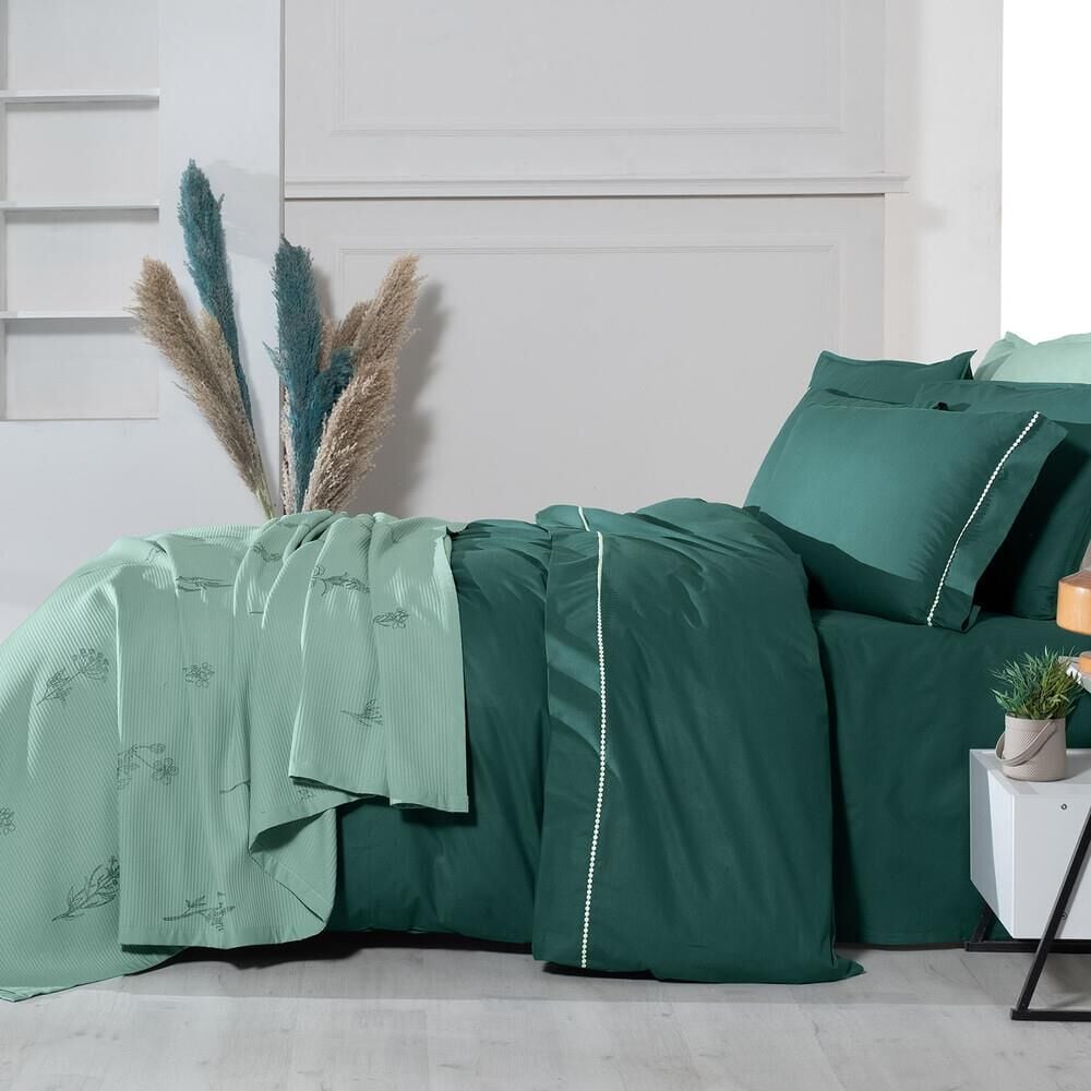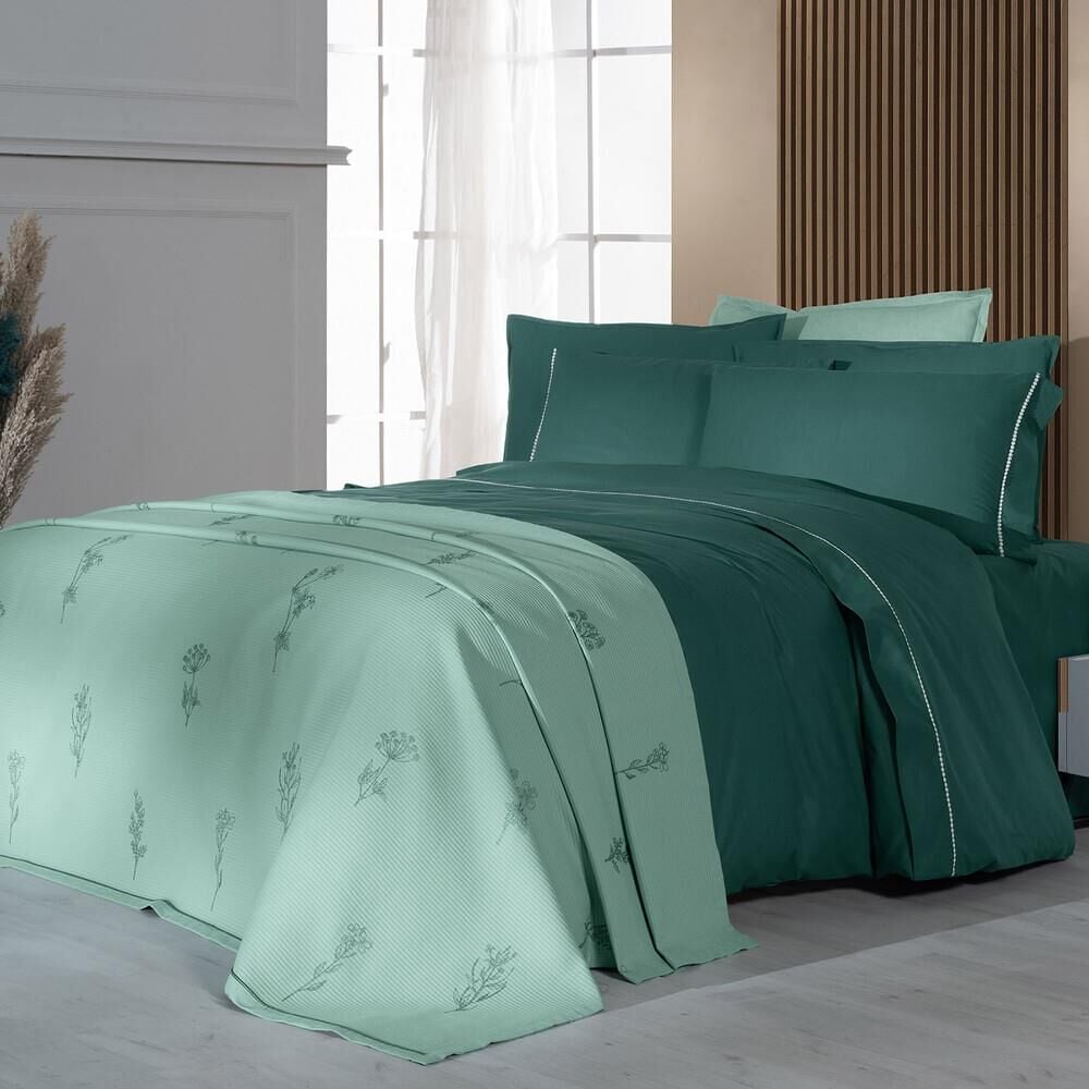 Sarev Eva Eldon Çift Kişilik Pike Takımı Nevresim Seti 2 Yastık-Yeşil