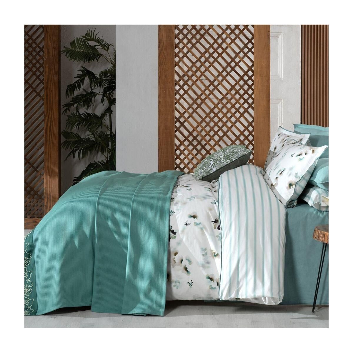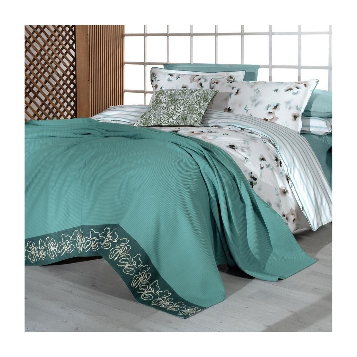Sarev Eva Jadon Çift Kişilik Pike Takımı Nevresim Seti 2 Yastık-Yeşil