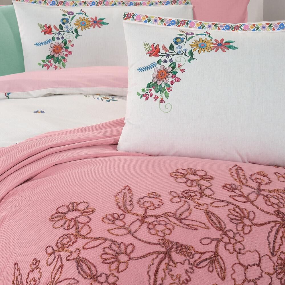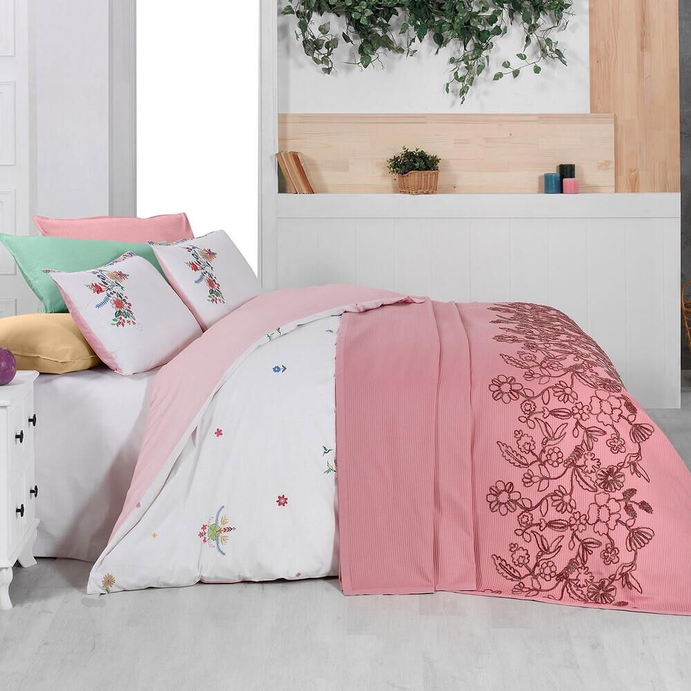 Sarev Eva Mia Tek Kişilik Pike Nevresim Seti 1 Yastık Pembe