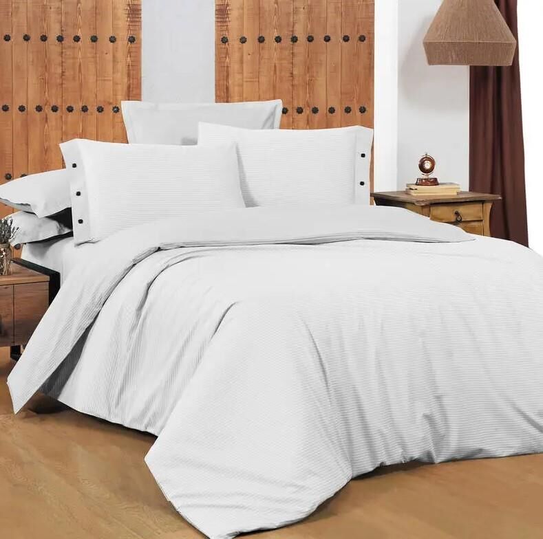 Sarev Fancy Stripe Nevresim Takımı Beyaz Çift Kişilik