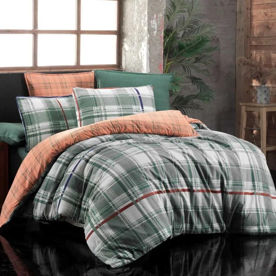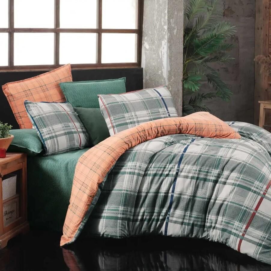 Sarev Helge Flanel Nevresim Takımı Yeşil Çift Kişilik