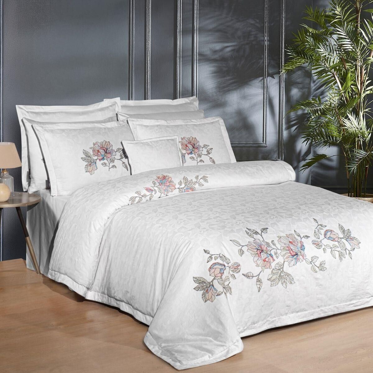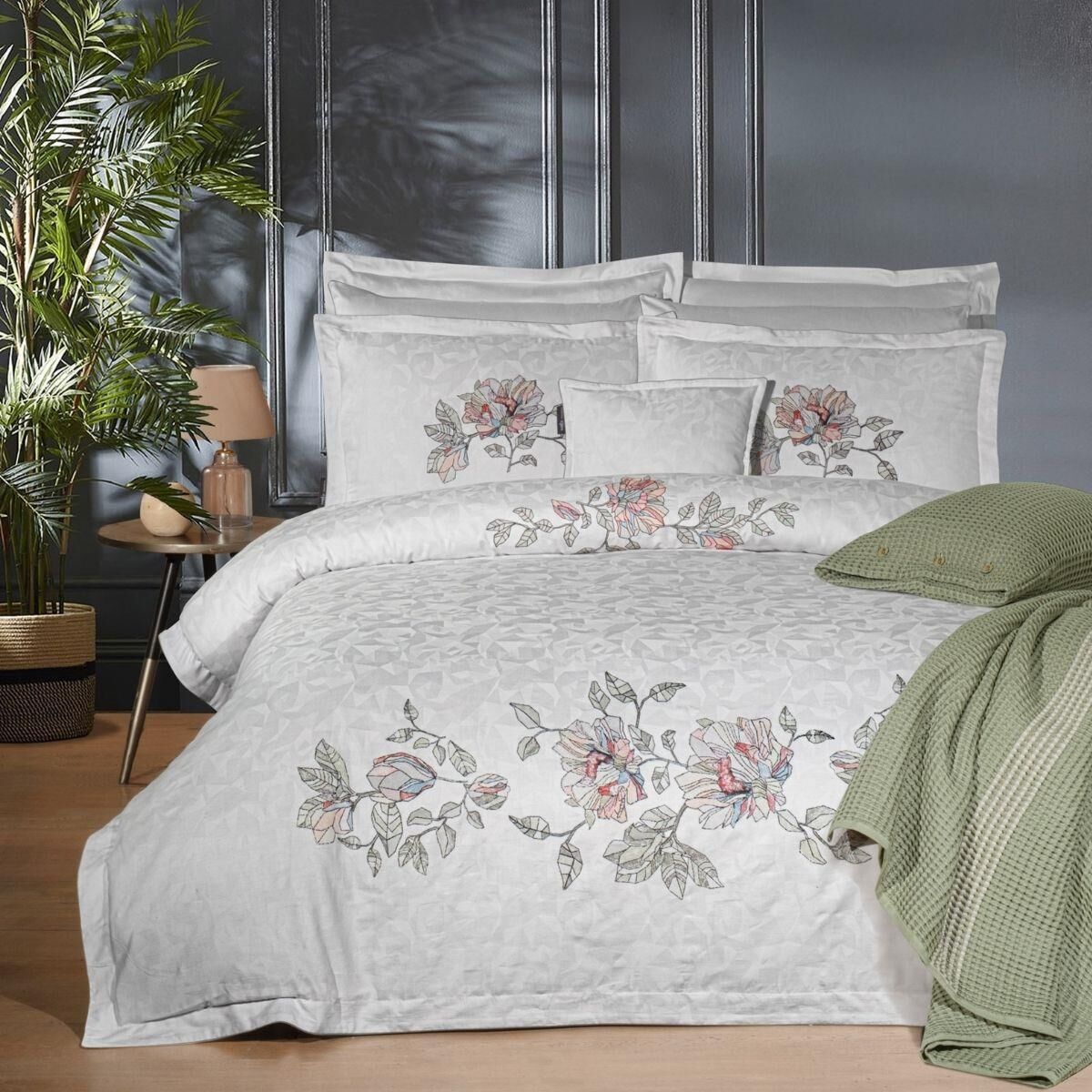 300tc (120 İplik) saten, jakarlı, iplik boyalı nevresim takımı.