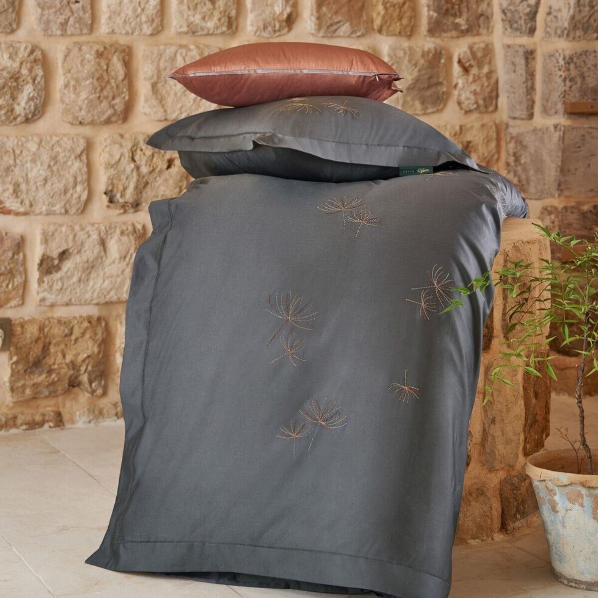 Sarev Juvetus Saten Nevresim Takımı Çift Kişilik 4 Yastık Gri