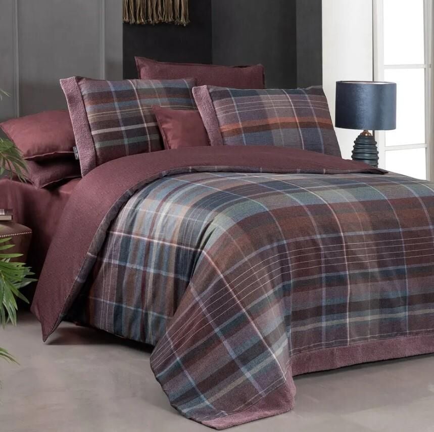 Sarev Kajani Saten Nevresim Takımı Çift Kişilik 4 Yastık-Mürdüm