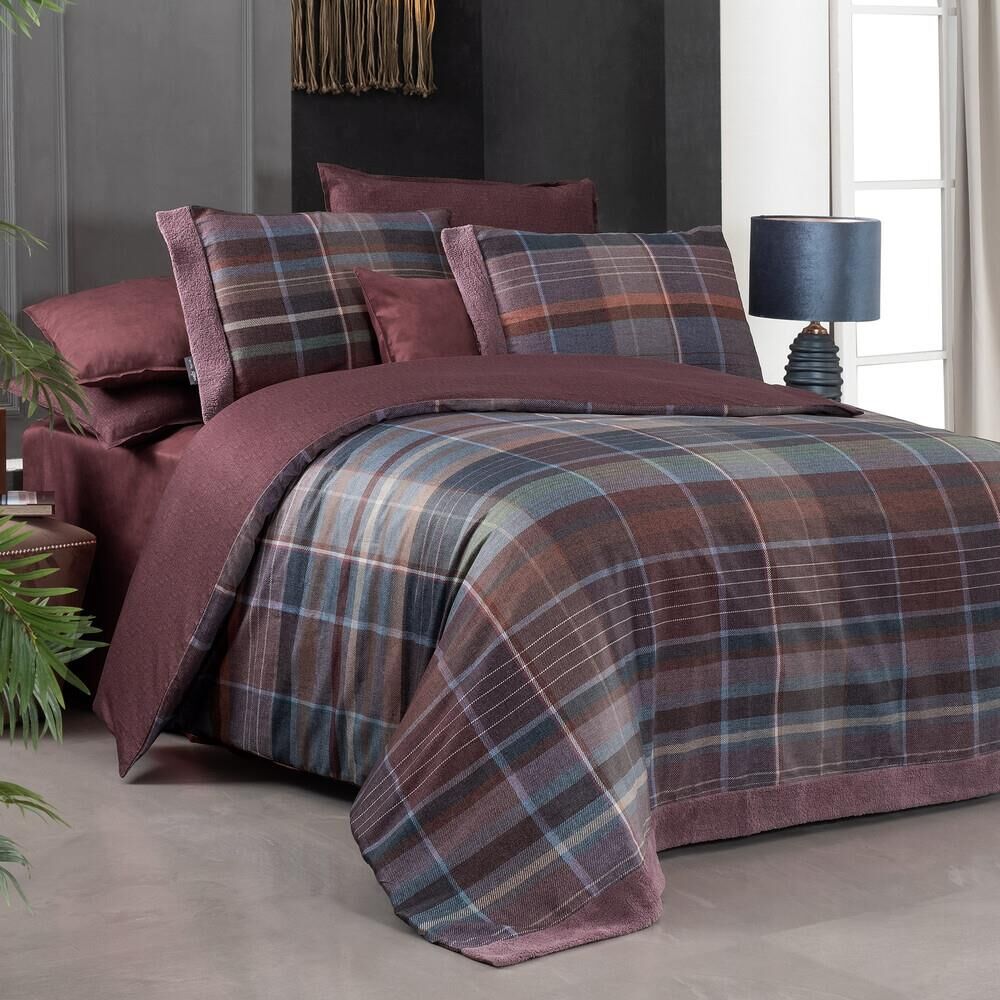 Sarev Kajani Saten Nevresim Takımı Tek Kişilik 2 Yastık-Mürdüm